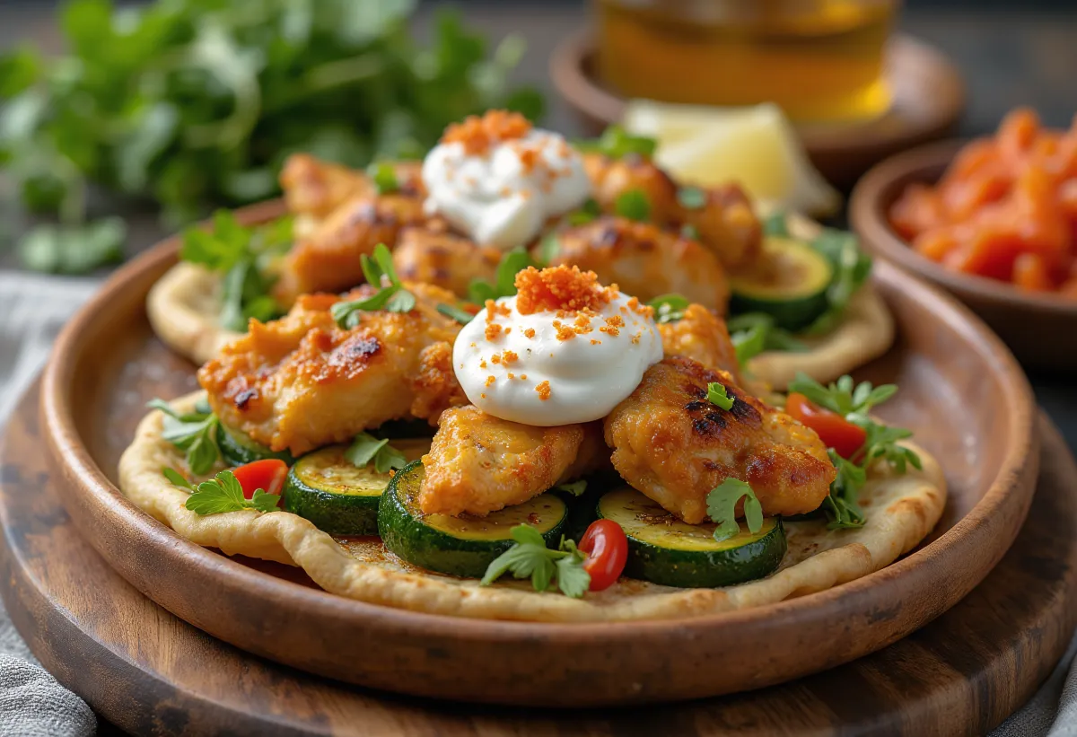 La cuisine fusion n'est pas un mélange aléatoire, mais un pont harmonieux entre deux cultures. Ici, la base grecque fraîche et yaourtée rencontre la chaleur des épices indiennes et la complexité des légumes fermentés coréens (kimchi). Le dénominateur commun est l'ail et le piquant, qui lient ce cocktail de saveurs audacieux.
